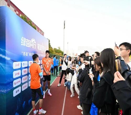 接下来的友谊赛将活动气氛推向高潮,苏超球员与媒体人混编,组成蓝橙两队同场竞技。