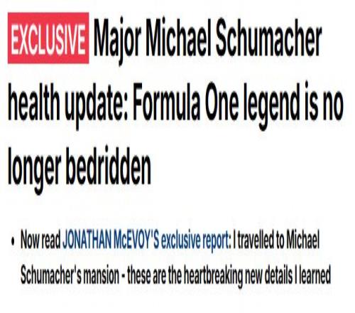 现年57岁的舒马赫自2013年12月滑雪事故导致严重颅脑损伤,陷入昏迷。随后在经过手术治疗后,返回家中开始高度私密的康复护理。