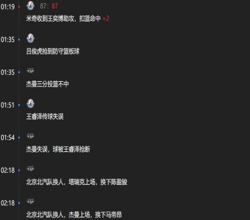 后续赵睿三分不中,杰曼还对米奇犯规,米奇连续罚球打进将比分反超。当然此后北京还有取胜的可能性。无奈的是,赵睿获得两次罚球不中,如果这两个球打进的话,北京可以追平分差。